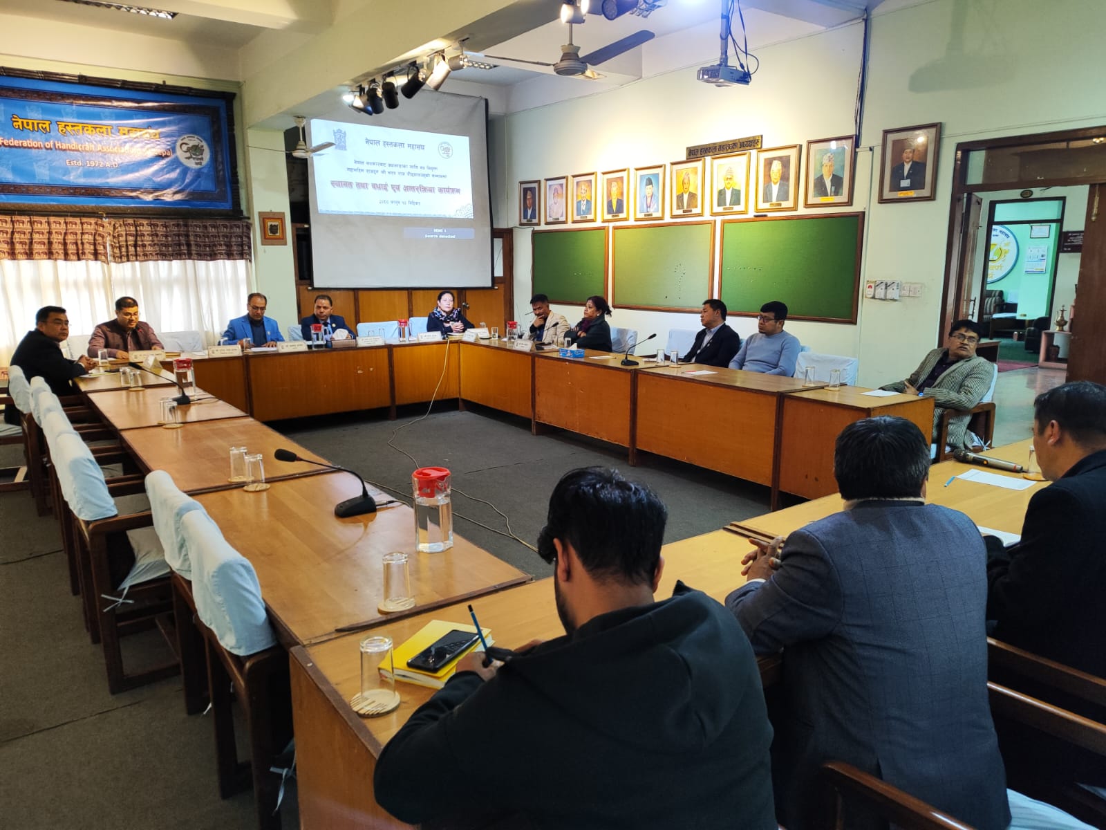 नेपाल सरकारबाट क्यानडाको लागि नब नियुक्त महामहिम राजदुत श्री भरतराज पौड्यालज्यूको सम्मानमा नेपाल हस्तकला महासंघद्धारा महासंघको सचिवालय थापाथलीमा स्वागत तथा वधाई कार्यक्रमको आयोजना गरियो । उक्त कार्यक्रममा नेपाली हस्तकला वस्तुहरुको क्यानडामा ब्यवसाय प्रवद्र्धन, विद्यमान समस्याहरुको समाधान एवं राजदुतावासबाट ब्यवसाय प्रवद्र्धनमा खेल्न सक्ने विविध भूमिकाहरुको विषयमा छलफल र विचार विमर्श भएको थियो । मिति २०८० फाल्गुन १० गते, बिहिबार ।