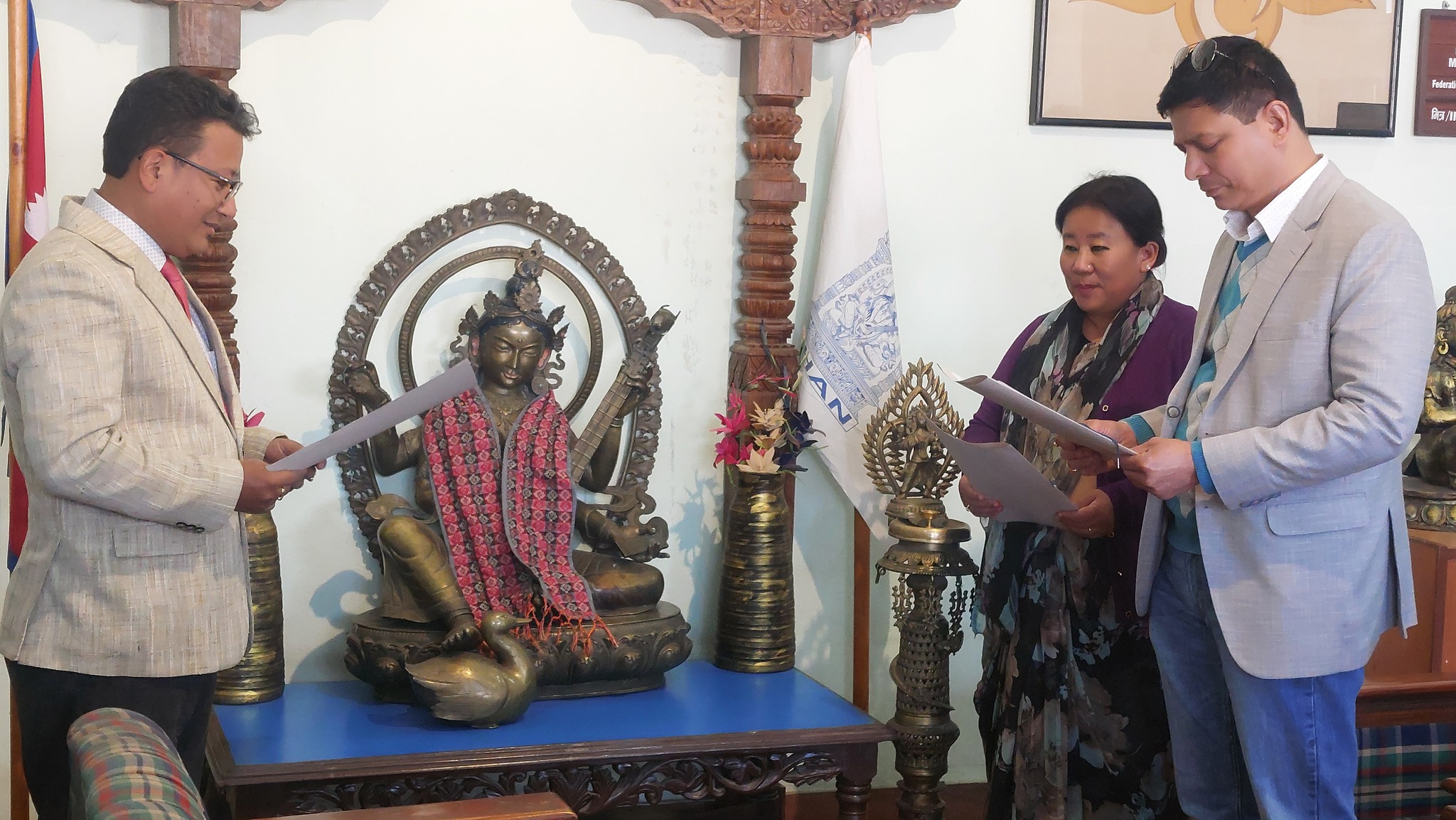 नेपाल हस्तकला महासंघको विधान २०६३ (चौथो संशोधन २०७८) अनुसार कार्य समितिमा रिक्त १ महिला सहित कार्य समिति सदस्य पद संख्या–२ मा कार्य समितिको सल्लाह बमोजिम अध्यक्षबाट मनोनयन गरिनु भएका नेपाल निर्यात परिषद् (ECON) का सचिव श्री राजु बानिया र अग्रणी महिला उद्यमी ब्यवसायी श्री सरस्वती राईलाई आज मिति २०८१ फागुन ११ गते आईतबार महासंघका अध्यक्ष श्री रविन्द्र शाक्यज्यूबाट कार्य समिति सदस्यमा पद तथा गोपनियताको सपथ ग्रहण गराइएको छ ।