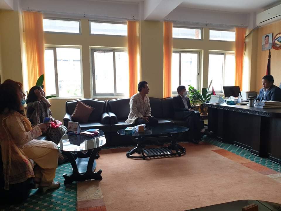 नेपाल हस्तकला महासंघका अध्यक्ष श्री सुरेन्द्र भाई शाक्य समेतकाे टाेलीले माननीय महिला, बालबालिका तथा जेष्ठ नागरिक मन्त्री माननीय श्री पार्वत गुरुङज्यू समक्ष काेभिड १९ काे महामारीकाे कारण नेपाली हस्तकला क्षेत्र (बिशेष गरि महिला उध्यमी व्यवसायिहरू) मा पर्न गएकाे असर एवं साेमा उक्त मंत्रालयबाट चालिनु पर्ने आवाश्यक पहलबारे जानकारी तथा सुझाब पेश गरिदैं